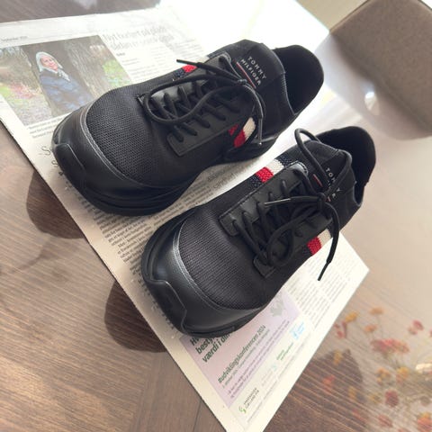 Tommy Hilfiger sneakers i størrelse 46. Skoene er sorte med logo på siden. Har brugt dem 2 gange men de er for små til mig.