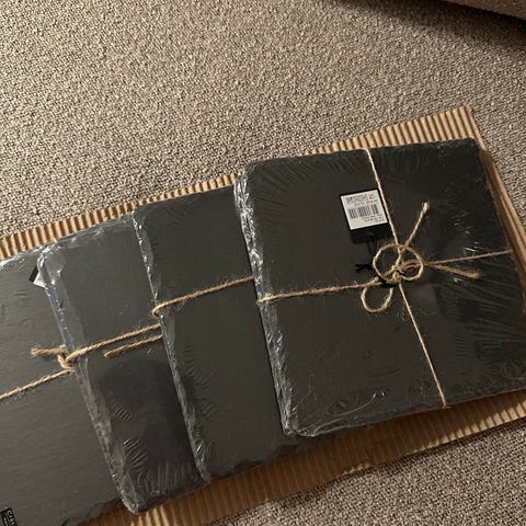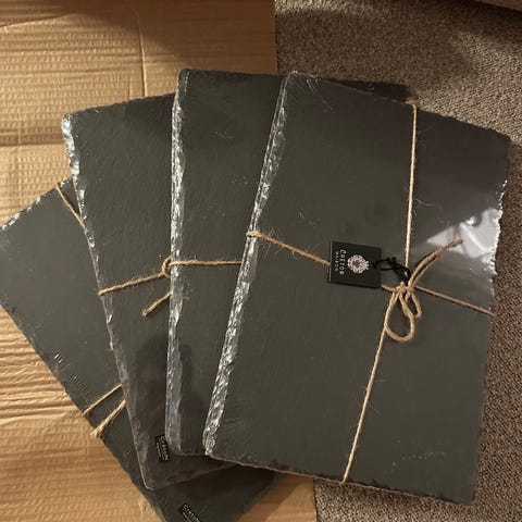 Nyt sæt af 4 sorte vinglas med 4 skiffer brikker til.