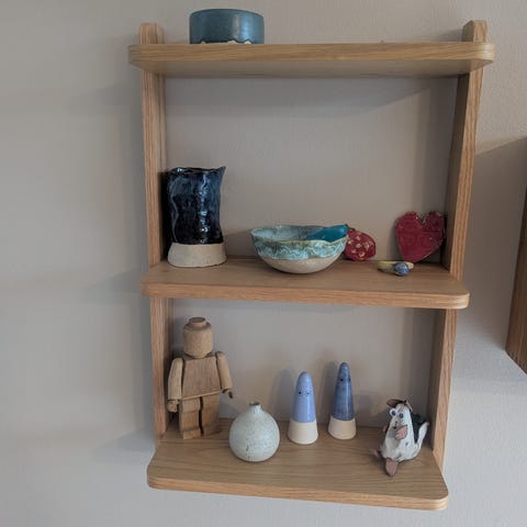 Sælger en stilren hylde med skuffe fra Søstrene Grene. Perfekt til opbevaring og dekoration i stuen, soveværelset eller entreen.