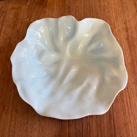 Smukt stort gult fad fra Ole Kortzau for Royal Copenhagen. Modellen hedder natura og måler ca 31 x 29