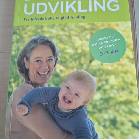 Helens Bog Om Dit Barns Udvikling bog, der dækker emner fra tilfreds baby til glad tumling. Bogen indeholder information om barnets udvikling og trivsel.