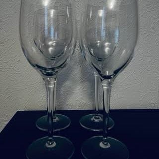 Grønt og klart glas vinglas med detaljeret mønster og klart glas stilk. Er af Kristal