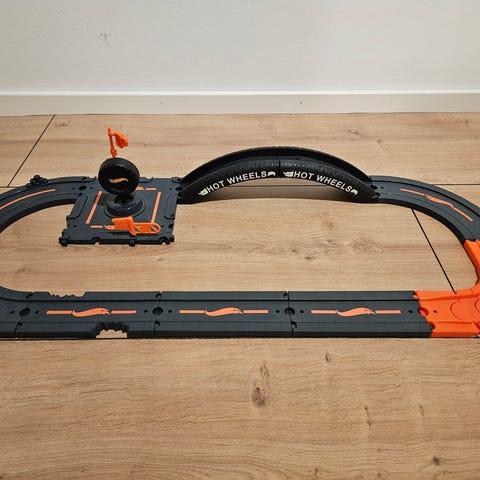 Hot Wheels legetøjsbane med tilhørende bil.