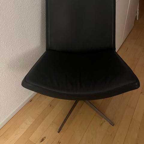 Den ene stol har et mindre brugstegn på sædet (se billede). Dette kan dog nemt dækkes med et lammeskind eller et flot tæppe, så det hverken ses eller mærkes under brug.