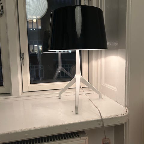 Flot Foscarini bordlampe Grande, som giver et flot og behageligt lys. Det er den store model, som måler 45 cm i højden. Lampen har ingen fejl eller mangler. Nyprisen varierer mellem 3.400-5.000 kr.