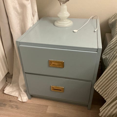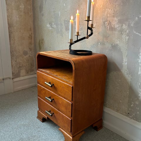 To stk sengebordskommoder i lyst træ