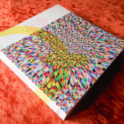 M.C. Escher Tryllespejl bog med illustrationer af optiske illusioner og grafiske mønstre. Indeholder tekster og billeder, der udforsker visuelle paradokser og matematiske figurer.