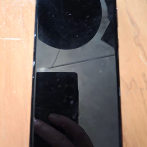 Skærmen har været udskiftet før, men fordi der blev installeret en kinesiskproduceret skærm, virker den nogle gange ikke. Den reparerer sig selv, når man låser og låser skærmen. Bagcoveret er i stykker, men hvis man bruger den med et cover, er der ikke noget problem. Køb telefonen velvidende at den har problemer.
