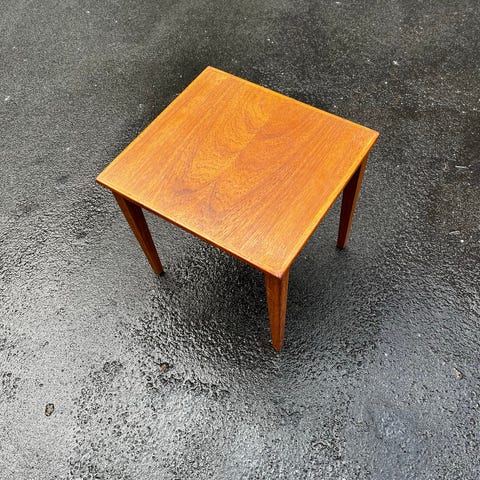 Flot og næsten fejlfrit lampebord / sidebord / sofabord i teaktræ. Fremstår med flotte detaljer.
