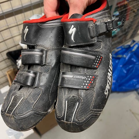 Specialized Pro cykelsko i sort farve, størrelse 44. Designet til cykling med lukning via drejespænde og velcrorem for sikker pasform.