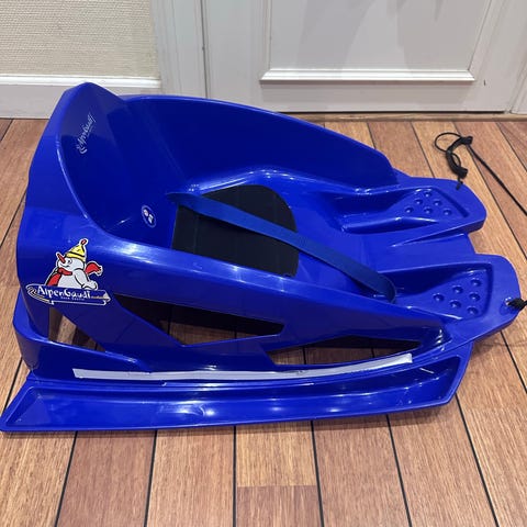 Blå børneslæde - kun brugt få gange. Sælges da vores barn er blevet for stor til den.