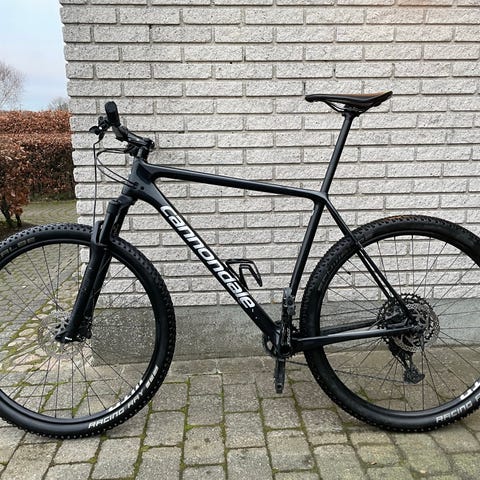 Cannondale Habit 1 Carbon, full suspension, L tommer, 11 gear stelnr. Haves, Super sjov, hurtig, let og svingglad trailbike. Fuld carbon: Stel samt bagsvinger, Lefty 2 forgaffel og styr (78 cm). Cannondale CZero 27.5 Carbon hjul. SRAM XX1 drivetrain. SRAM Guide/G2 bremser. SRAM Reverb 175 dropperpost (2 år gl. men trænger til service). Nye, brede Schwalbe Nobby Nic / Rocket Ron 2.60 x 27.5 dæk sat op tubeless.