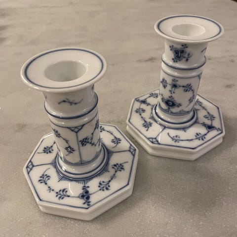 Royal Copenhagen Musselmalet Helblonde lysestager, sælges som et sæt.