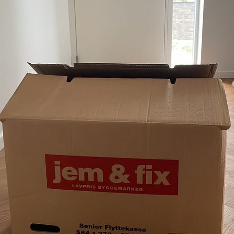 Flyttekasser fra jem & fix, brugt til 2 gange flygtninge og har skrift på.
