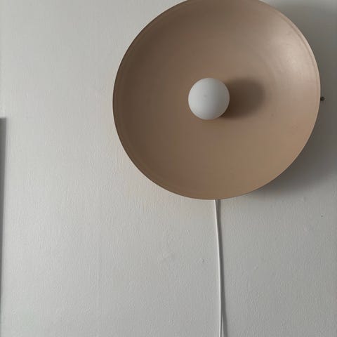 Sød og stilfuld væglampe fra Ilva med dekorations pære/hus. Den er købt til at hænge ved et sminkebord i 2017. Den måler 24 cm i dybden til og med pærehuset. Pæren/huset har en diameter på 10 cm. Foden har en diameter på 6 cm. Den har ikke været brugt de sidste 5 år. Nyprisen er 999 kr.