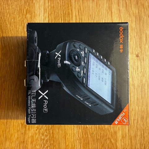 Godox XPro C kamera blitz trigger designet til Canon kameraer. Udstyret med en stor LCD-skærm og flere kontrolknapper for nem betjening. Inkluderer en rund diffuser og tilbehør til tilslutning og strømforsyning.