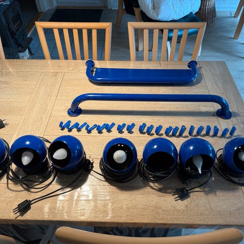 Flotte klassiske kuglelamper fra Ilva i chrom. Perfekt til børneværelset som læselampe. De har en diameter på 12 cm. Nyprisen er 600 kr. stykket - forskellen på de billige og de her er, efter min mening styrken i magneten. De billige er født med dårlige magneter, hvilket generer, når man flytter på lampen. Begge pærer medfølger, og de virker.