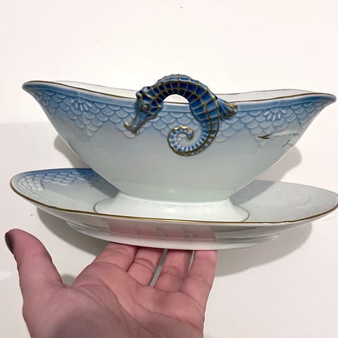 B&G Mågestel sovseskål med guldkant.
