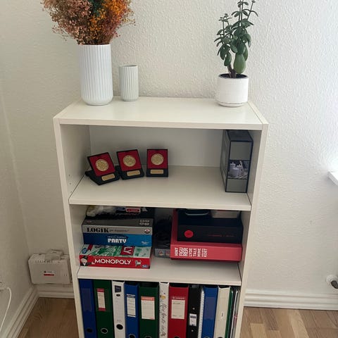 Reol med tre hylder. Hvid.,Afhentes i:,Røde Kors Kolding (621),Bemærk at mail, chat og beskeder ikke besvares, og varen skal købes på knappen "Gå til varen"