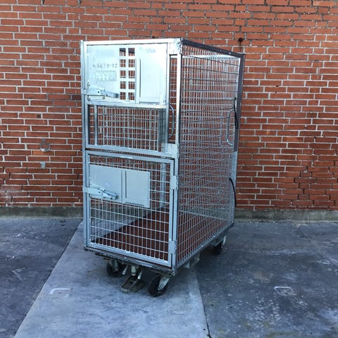 Elforzinket rullecontainer med central bremse.