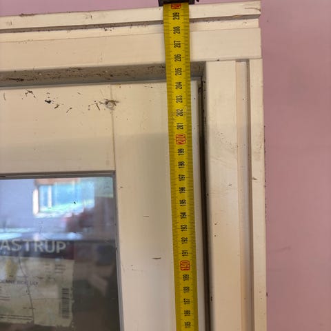Ubrugt Kastrup Terrassedør, Træ/træ, højrehængt, indadgående, 3 lag glas, sikkerhedesglas, tonede ruder, alubundstykke, har håndtag på beggesider, mulighed for lås på indersiden, mål: H208,4 B101,2 D14,1 Varenummer: 1507