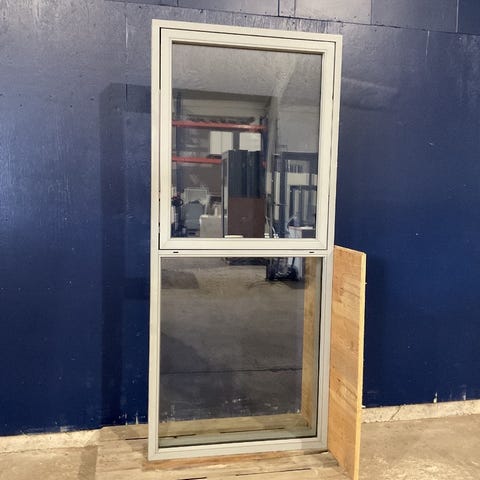 Brugt Idealcombi Vinduesparti, Alu/træ, 2 lag glas, topstyret/fastkarm, mål: H214 B95,2 D11,7 Varenummer: 1501