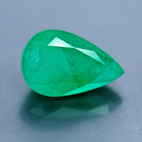 Smaragd, 1 sten, samlet 2,57 ct, pæreformet cut, farve grøn, gennemsigtig, øje-ren, oliebehandlet (F1), oprindelse Colombia, laboratorierapport IGE D-60050. Klik på den blå "gå til varen" knap, for at købe eller byde på denne vare. Den samlede pris vil blive vist inden du afgiver dit bud.