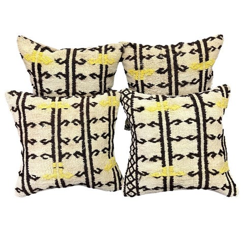 Oprindelsesland Türkiye; Model (4) Boho Authentic Rug; sæt med fire håndlavede puder, hver 40 x 40 cm, lavet af 100% uld og gedhair fra vintage kilim-stykker, i god stand med små aldringsmærker, bagside bomuld med skjult lynlås, indlæg følger ikke. Klik på den blå "gå til varen" knap, for at købe eller byde på denne vare. Den samlede pris vil blive vist inden du afgiver dit bud.