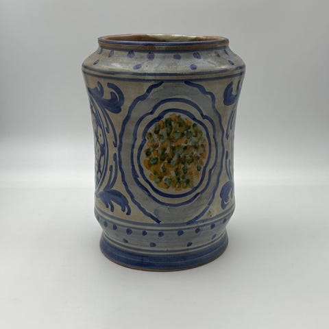 Meget smukke er dekorationerne, der omgiver navnet (til stede på begge sider), og som repræsenterer en laurbærkrans. Håndtagene, robuste og svingbare, kan stadig bære betydelige vægte. Det samme