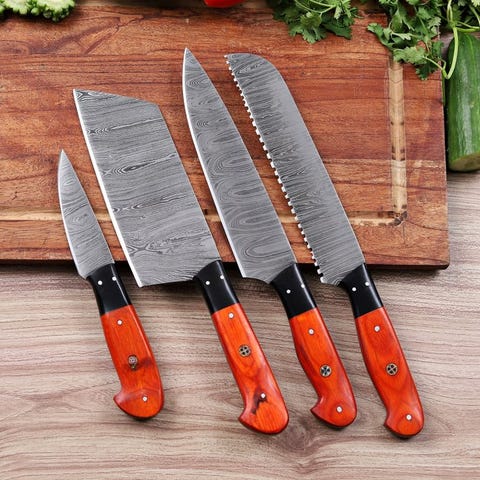 Vi er begejstrede for at præsentere et eksklusivt sæt af TRE håndlavede Japanese Style-knive fra en verdensberømt professionel samling—et must-have for kokke, samlere og udendørsentusiaster! Disse specialfremstøbte blade, skabt med omhu, kombinerer tidløs kunsthåndværk med enestående ydeevne, hvilket gør dem til en værdifuld tilføjelse til ethvert kongeligt køkken eller campingudstyr. Hvorfor disse knive skiller sig ud: Elitehåndværk: Forgyldt af Shirogami Old steel, kendt for sin enestående hårdhed (HRC 52 til 57) og skarp kant. Disse blade leverer præcisionsskæring og langvarig holdbarhed til enhver opgave, fra delikat skæring til robust udendørs hakning.