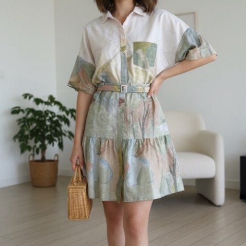 Fineste skjortekjole beige med de flotte grønlige nuancer nederst str M. 🍃
