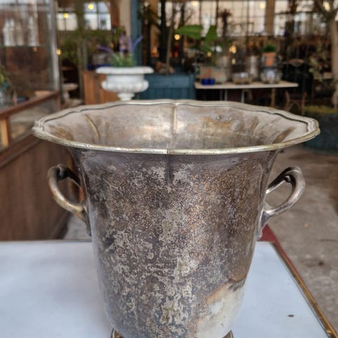 Et art deco sølvbelagt champagnespand i Louis Roederer, Frankrig, 1930–1940, med ægthedsstempler. Klik på den blå "gå til varen" knap, for at købe eller byde på denne vare. Den samlede pris vil blive vist inden du afgiver dit bud.