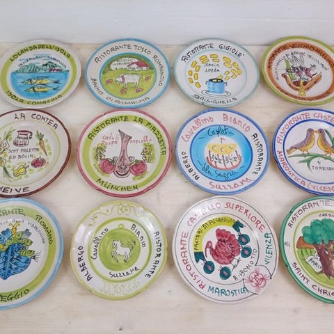 Hvert tallerken har en diameter på 24,5 cm og er udsmykket med en bred kant med dobbelt profil i ægte guld, rig og skinnende, som perfekt indrammer de livlige naturscener i midten.