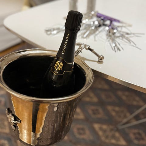 Vinkøler eller champagnekøler - metalisk isbøtte, i sølvmetal. Designet er cylindrisk med dekorative horisontale bånd og sammenklappelige håndtag på hver side, en populær stil i vintage- eller moderne midten af århundredets barartikler.
