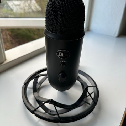 Blue Yeti USB mikrofon med 4 forskellige optagemønster, justerbar gain, mute knap og stabil fod.