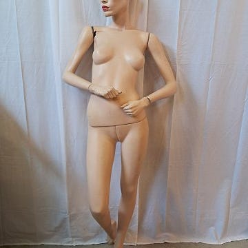 Italiensk vintage justerbar skrædderduk fra 1960’erne med sort plastikkrop og metaldele, højdejusterbar via en metalrør og torsoen åbner lodret; står på en solid metalfod med treben; god brugt stand med alders- og små pletter, vægt 8 kg, målene 115 cm høje, 31 cm brede og 28 cm dybe. Klik på den blå "gå til varen" knap, for at købe eller byde på denne vare. Den samlede pris vil blive vist inden du afgiver dit bud.