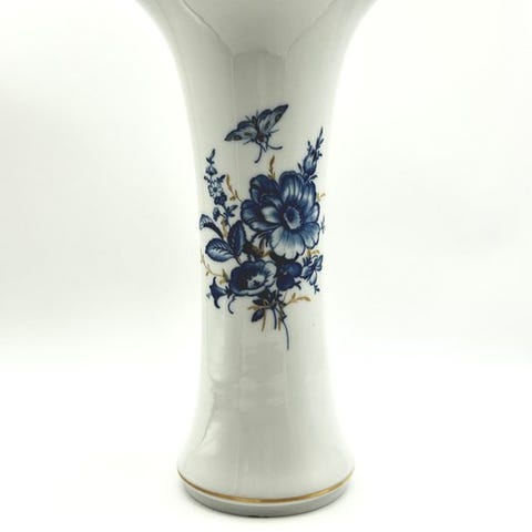 To Meissen-vaser med blomsterdekoration, spredte blomster og guldrand, omkring 1980.