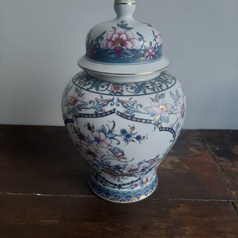 Materiale: hånddekoreret fajance, guldtryk