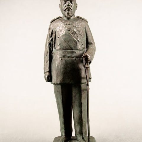 Bronzestatue med titlen “Wealth-Roaring Lion” (富吼獅子) af Tsukigata Nahiko, Showa-perioden, monteret på en marmorbase og underskrevet, samlede dimensioner ca. 16 cm høj, 14,2 cm bred og 15 cm dyb, i god stand med mindre brugsspor og rust. Klik på den blå "gå til varen" knap, for at købe eller byde på denne vare. Den samlede pris vil blive vist inden du afgiver dit bud.