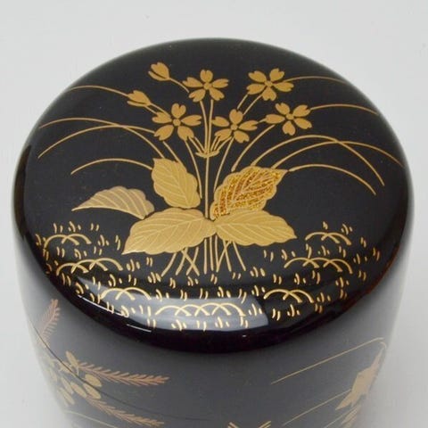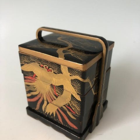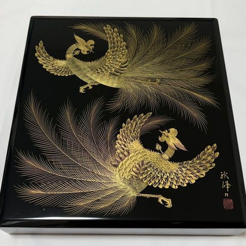 Guldfarvet Somenishiki (Dye-brocade) løvemønster tekop-sæt med Tomobako-boks ...