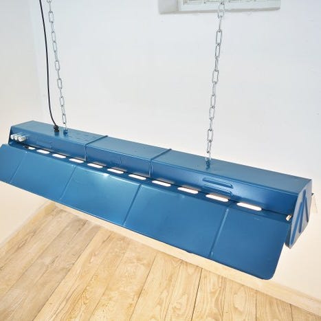 Vintage industriel hængelampe af metal fra Frankrig i god brugt stand med mindre alderstegn, fuldt LED-integreret og i funktion. Klik på den blå "gå til varen" knap, for at købe eller byde på denne vare. Den samlede pris vil blive vist inden du afgiver dit bud.