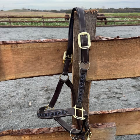 Det brede, trykaflastende nakkestørre giver hesten maksimal komfort. Hage, kæbe og næsestykke er også udformet med polstret læder.