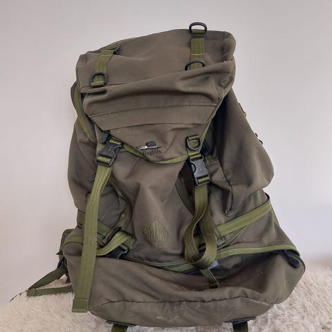 70 liter Haglöfs Vandrerygsæk med regnslag, 2 stk. lommer på siderne, stor lomme under og på toppen i rigtigt fint stand.