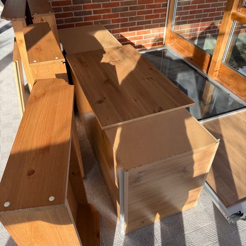 Står samlet på 3 sal og skal bæres ned. Relativt let vægt