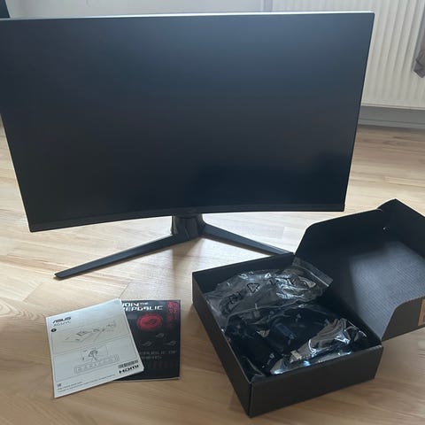 Jeg sælger to computerskærme. Omen og Samsung. Gaming-setup bestående af Omen computerskærm, Omen tastatur og Omen mus.