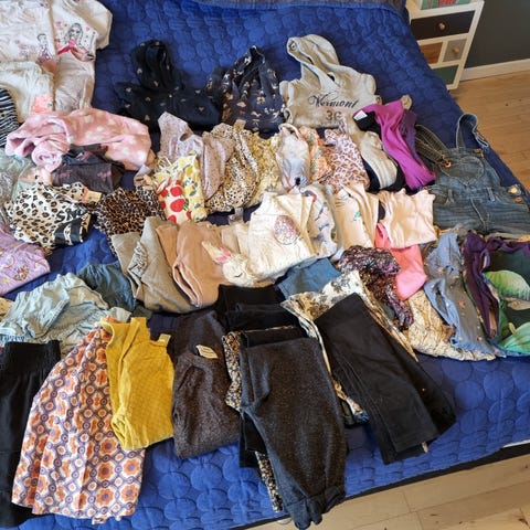 Bukser, bluser, bodyer, trøjer, fleece, shorts, nederdele, undertrøjer mm.
