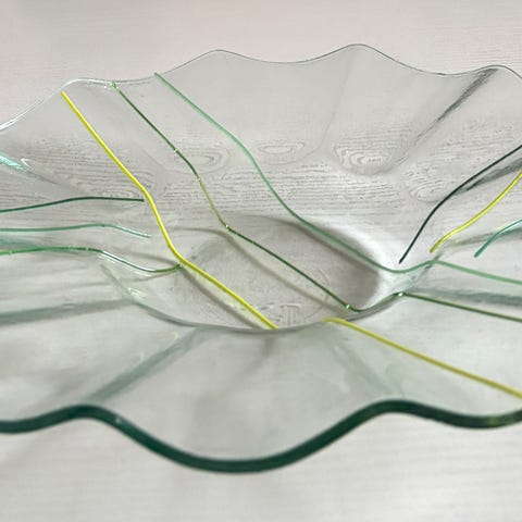 Rigtig pæn glas Skål/fad til kage eller andet, er ikke flad i bunden.