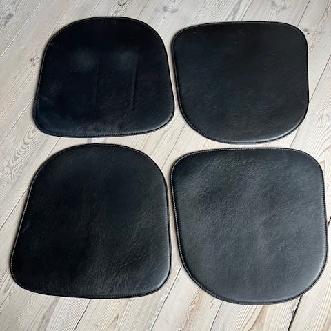 Sælger to Eames stole inkl læderhynde for 700 kr stykket. De er velholdte.