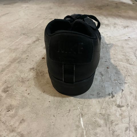 Dette par sneakers er fra Nike og har en størrelse på 36,5. De er helt hvide med det karakteristiske Nike-logo på begge sider og bagpå. Skoene har snørebånd og en solid gummisål med tydelige slidmønstre. Der er tegn på almindelig brug, men skoene er stadig funktionelle.