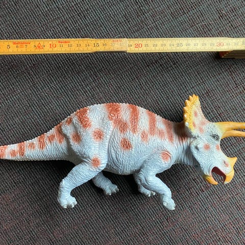 Tags: dinosaur, triceratops, figur, legetøj, plast, rød